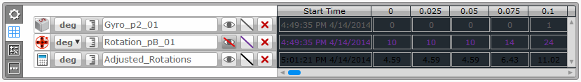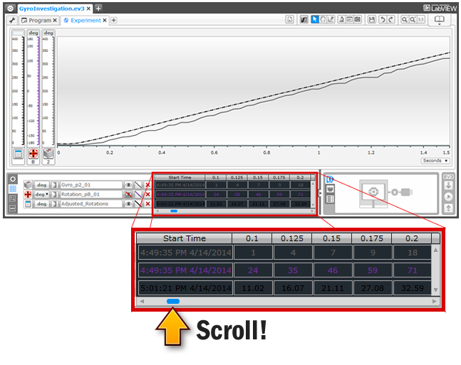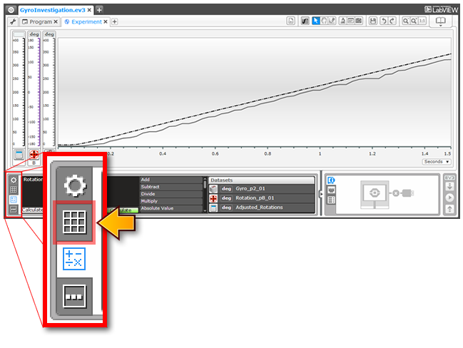 You can also see the exact values for each sensor in numeric format in the Dataset Tables View.